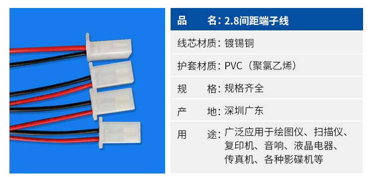 反向插頭端子線2.8間距端子線保險絲管連接端子線