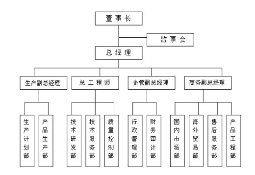 公司的架構(gòu)完全依照現(xiàn)代企業(yè)組織結(jié)構(gòu)和自身的生產(chǎn)經(jīng)營情況整合而成,同時又充分發(fā)揮了各個合作企業(yè)獨自的強項,成為優(yōu)勢互補,強強聯(lián)手的現(xiàn)代化大型科技企業(yè),并貫徹ISO9001質(zhì)量體系。公司的架構(gòu)主要分為四個部分,實現(xiàn)了生產(chǎn)、研發(fā)、管理、銷售并舉的良好動作體系。